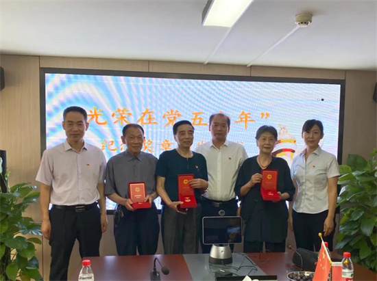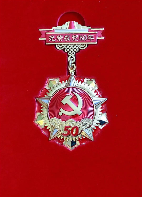 會(huì)上,還為老黨員頒發(fā)了“光榮在黨50年”紀(jì)念章。