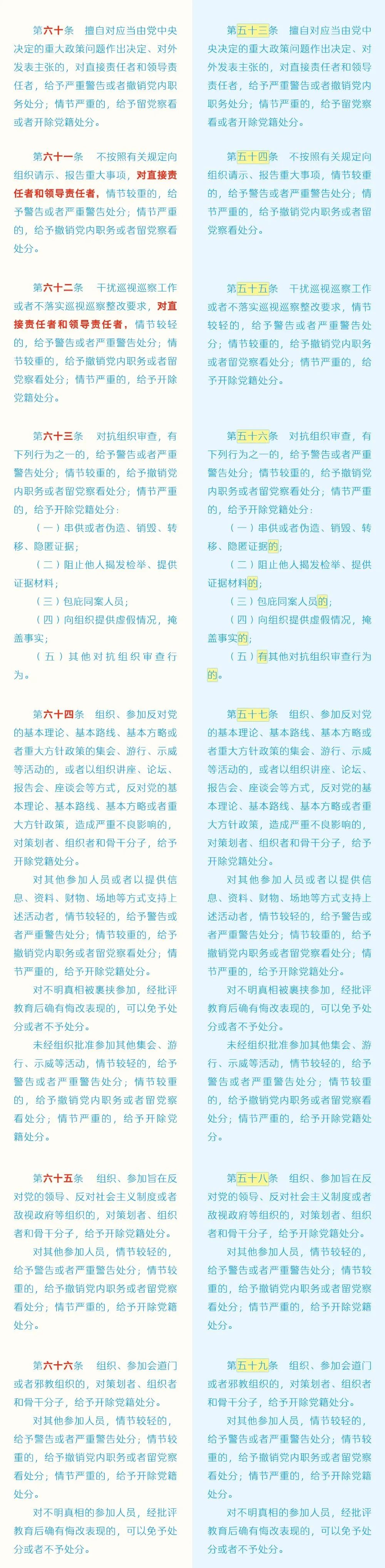 近日,中共中央印發了修訂后的《中國共產黨紀律處分條例》(以下簡稱《條例》),并發出通知,要求各地區各部門認真遵照執行。為幫助大家更好學習理解,本文對《條例》已修訂內容與原內容進行對照解讀。